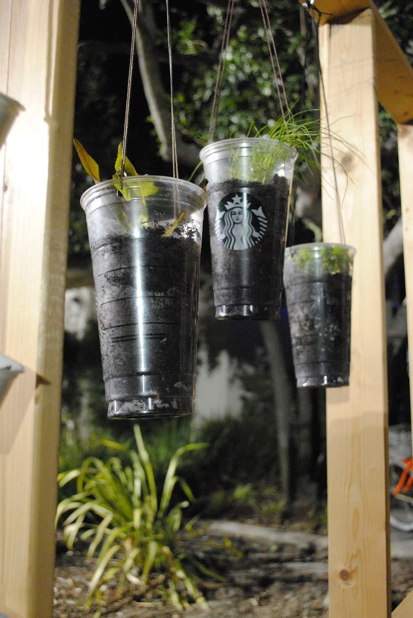 My team selected the CSULB Grow Beach University Garden as our client and designed a 2-part portable interactive space. The first part was a collapsible structure with hooks for hanging plants and graphics. The second part was a mobile planter table. We constructed the entire project out of used Ikea bed slats, leftover wood from the Grow Beach planter boxes, used plastic Starbucks cups and coffee grounds, and unrecyclable Keurig cups. The structure was donated to the garden at completion for continued use.Fall Concert in the Garden at CSULB - November 2015