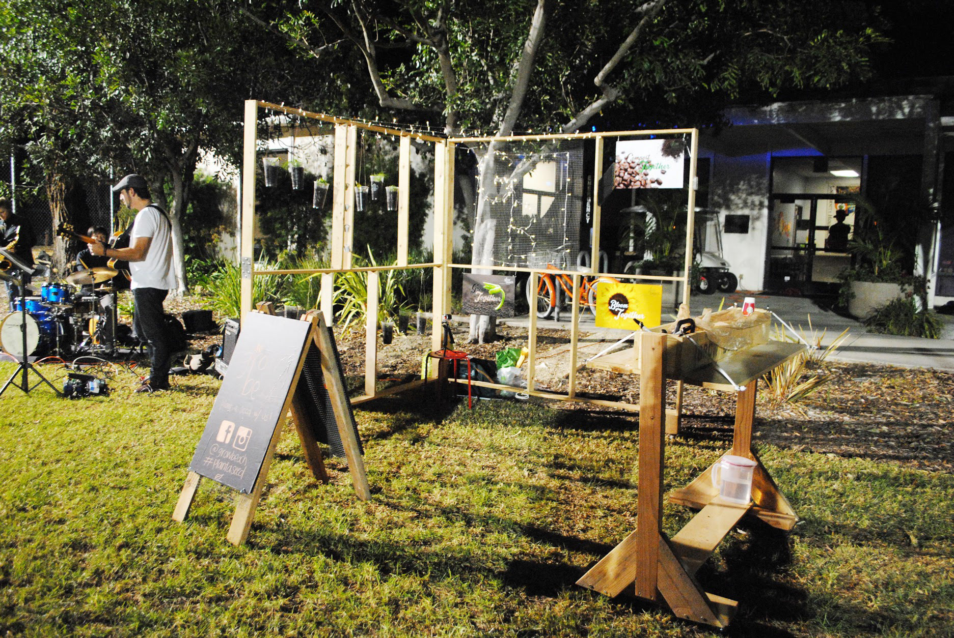 The structure was activated at the 2015 Fall Concert in the Garden at CSULB. Attendees interacted with it by observing the plants and posters, planting seeds of their own, and connecting with the GrowBeach sustainability accounts on social media platforms.