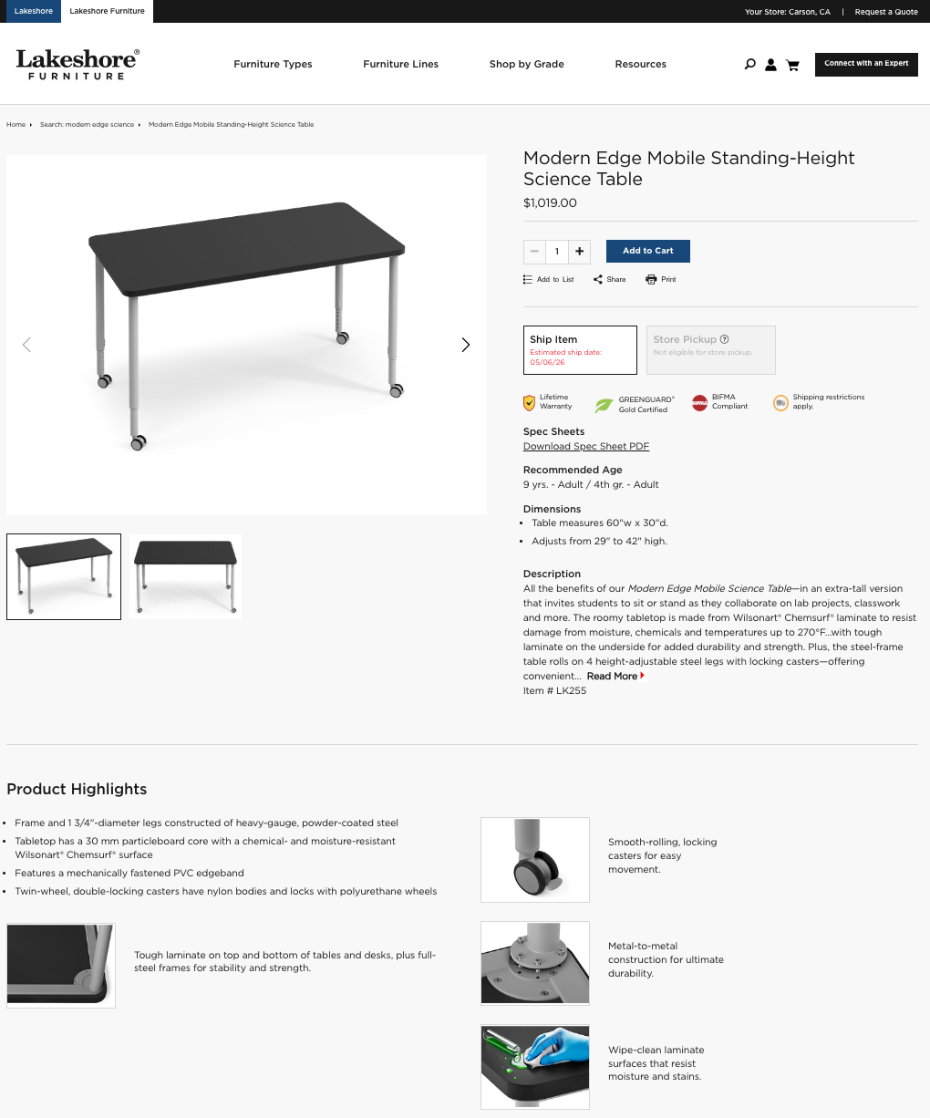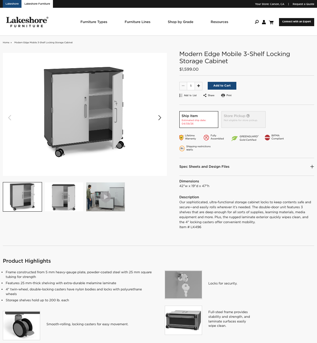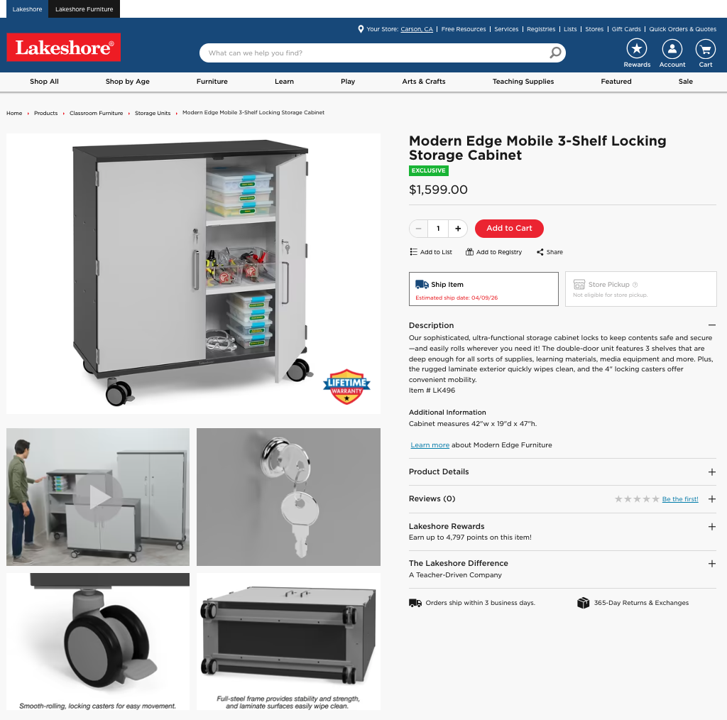 Item is sold on both the regular e-commerce site for educator and parent viewing, as well as on the targeted furniture side for educators and classroom designers.
