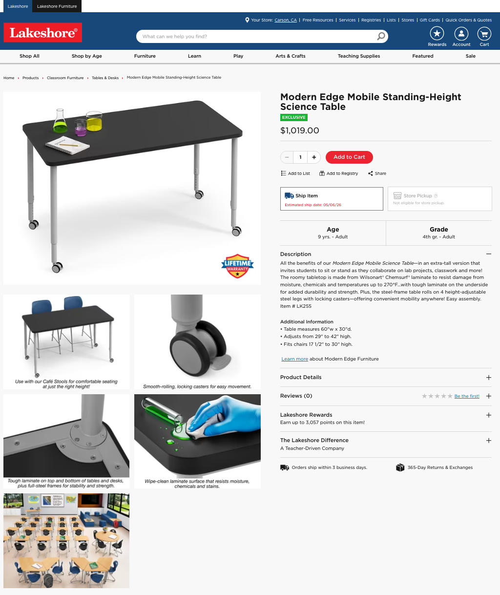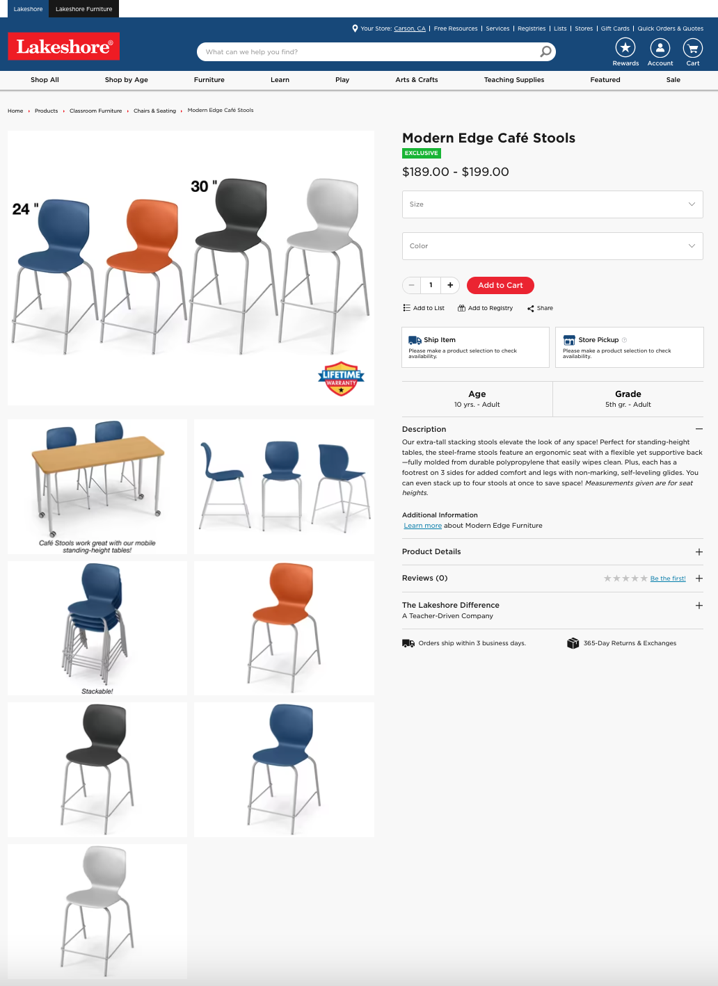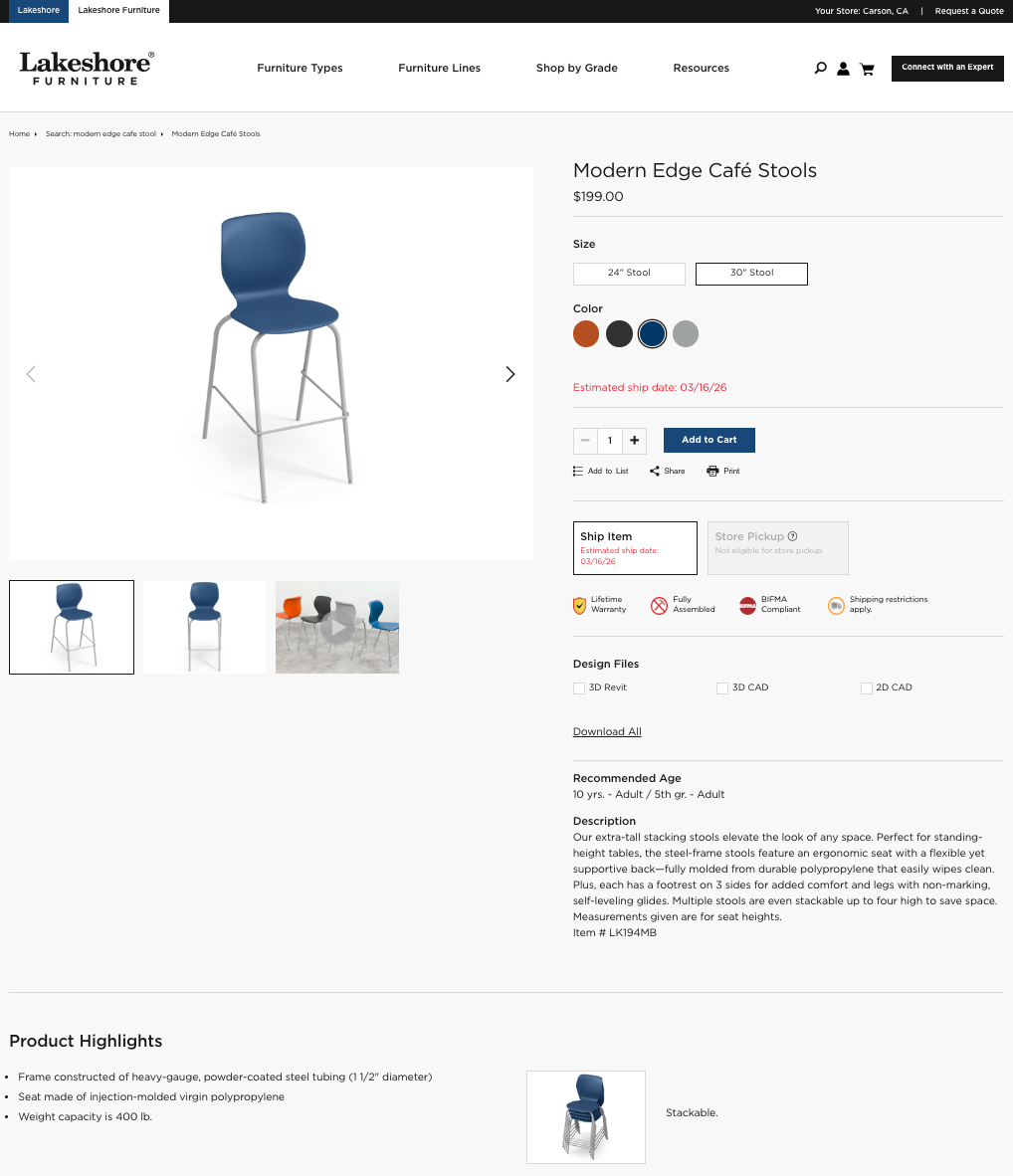 Item is sold on both the regular e-commerce site for educator and parent viewing, as well as on the targeted furniture side for educators and classroom designers.