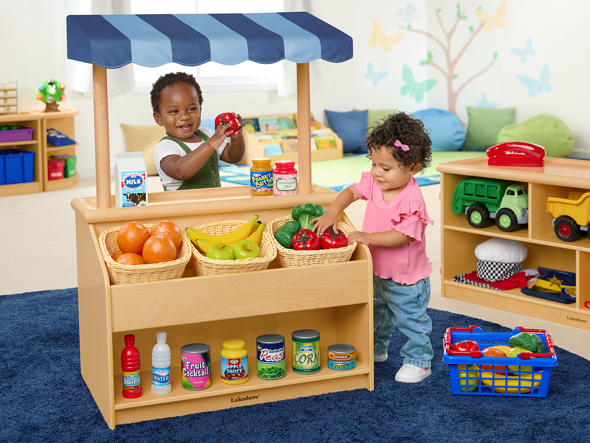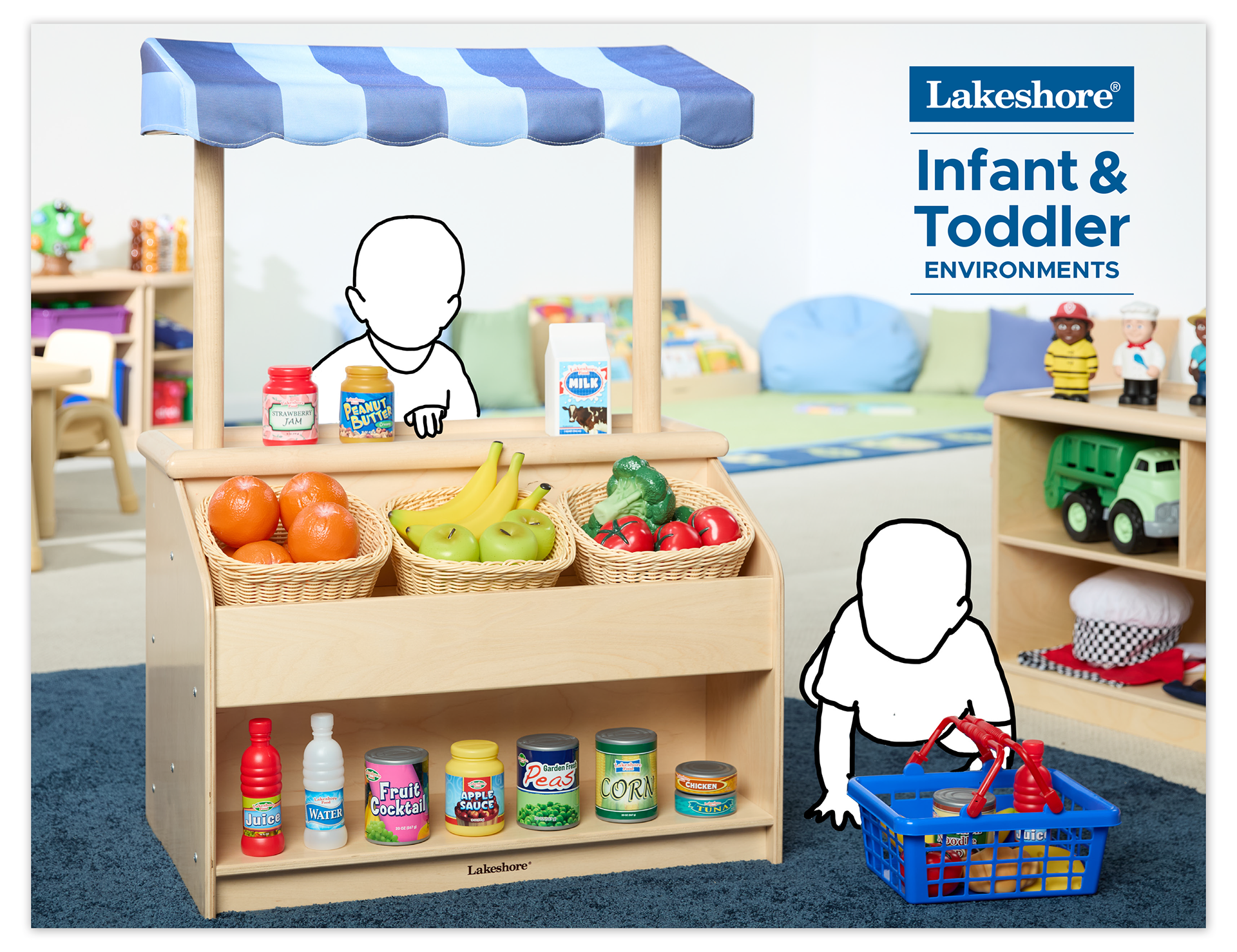 Lifestyle image featuring 12 month old models playing together with the product in a 12-24 Month age range classroom arrangement by Lakeshore