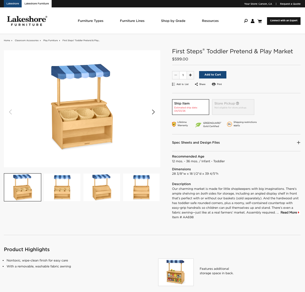 • Site is more technical, appealing directly to those shopping for classroom furniture like B2B buyers
